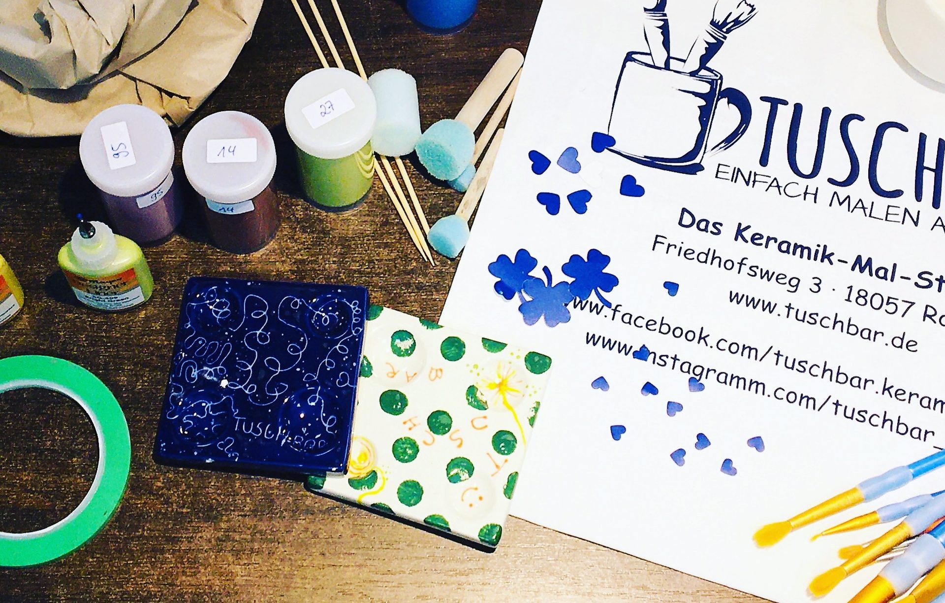 Die Tuschbar ist ein Keramik-Mal-Studio für alle, die Farben und Formen lieben und ihrer Kreativität freien Lauf lassen möchten. "Tuschbar" ist übrigens ein Wortspiel ;-) Nicht, dass wir Erwartungen im Hinblick auf eine Bar im üblichen Sinne enttäuschen.