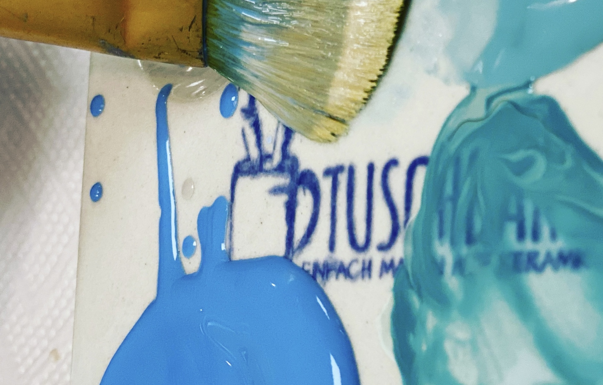 Du brauchst keinerlei Vorkenntnisse um einfach auf Keramik zu malen, stempeln, kratzen, klecksen oder tupfen.